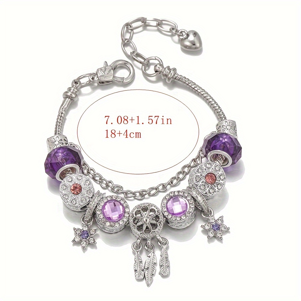 品牌女士时尚手链,紫色捕梦网吊坠镶有闪石,合金材质,全季节适用